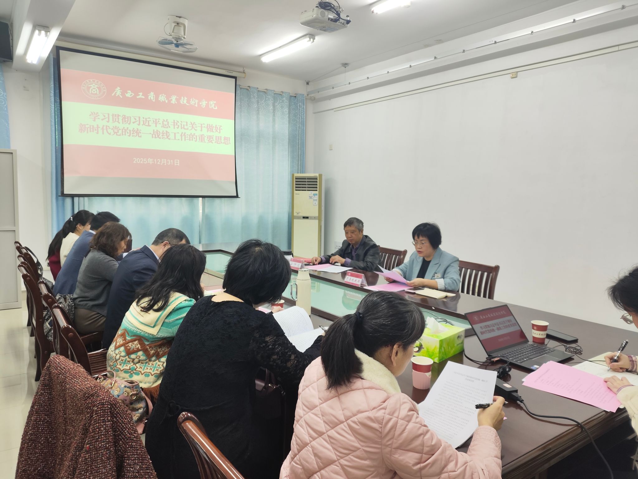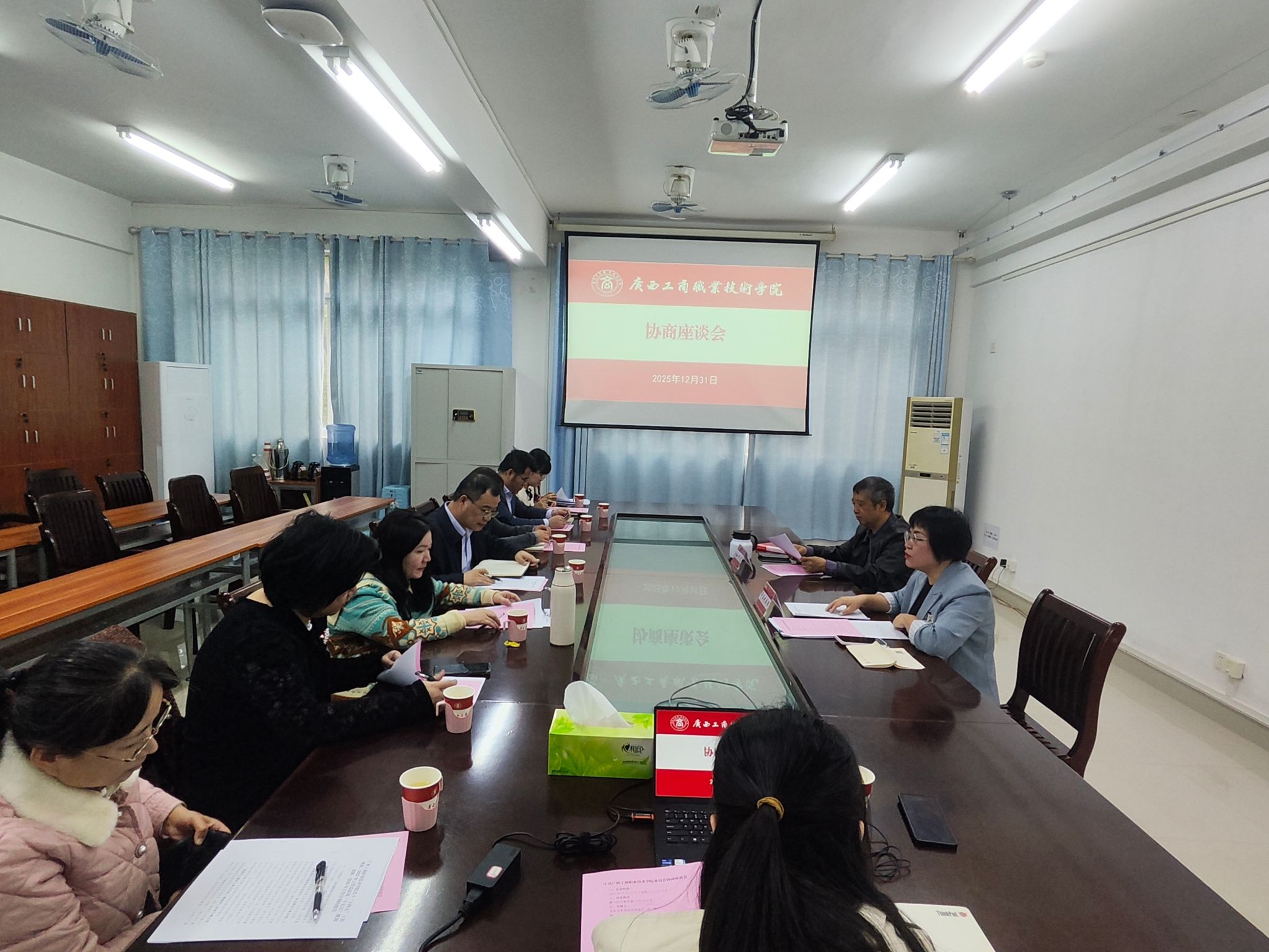 为进一步巩固共同思想政治基础,着力做好新形势下学校统一战线工作,2025年12月31日上午9点,我校在鹏飞校区2109会议室召开党外代表人士座谈会。学校党委副书记安仲文出席会议。学校民主党派成员、无党派人士及党外知识分子代表齐聚一堂,共话发展、共献良策。学校党委统战部负责人主持会议。